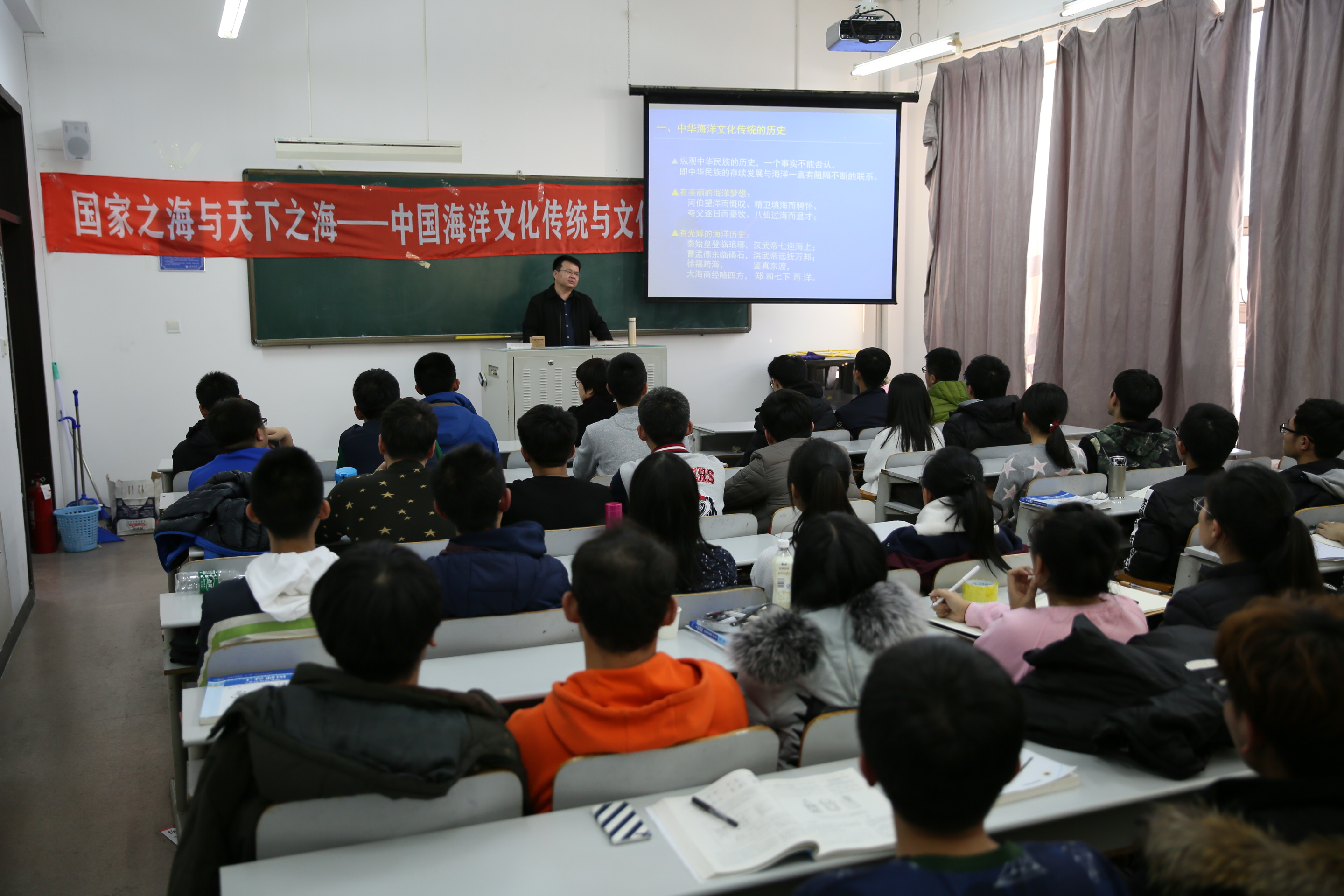 12月6日,学院特别邀请法学院(海警学院)洪刚老师进行了以“国家之海与天下之海”为主题的海洋意识教育讲座。学院主管学生工作副书记邓艺、辅导员沈文静、学院全体学生参加。讲座由邓艺主持。