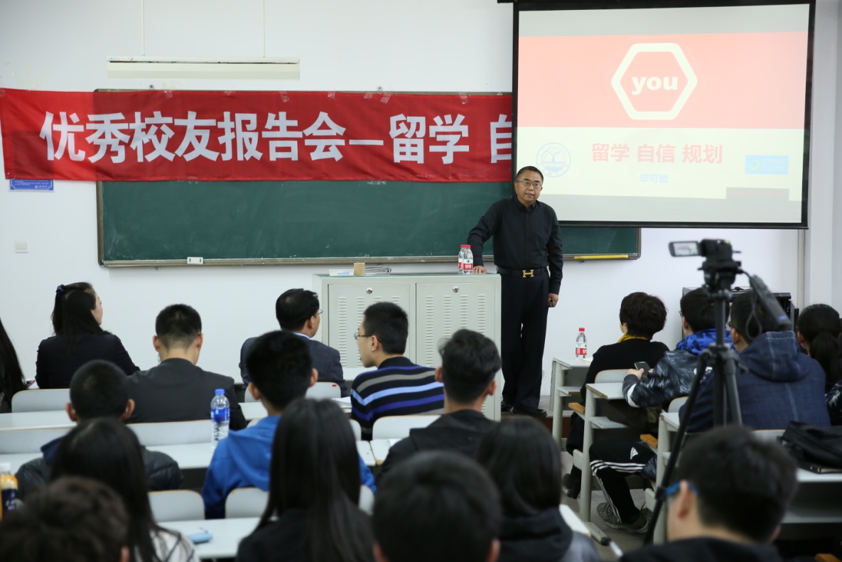 4月5日下午,91吃瓜 在獐子岛教学楼511教室举办了主题为“留学、自信、规划”的优秀校友报告会。报告会由我校八六届校友毕克敏教授主讲,学院全体师生参加,辅导员沈文静主持。