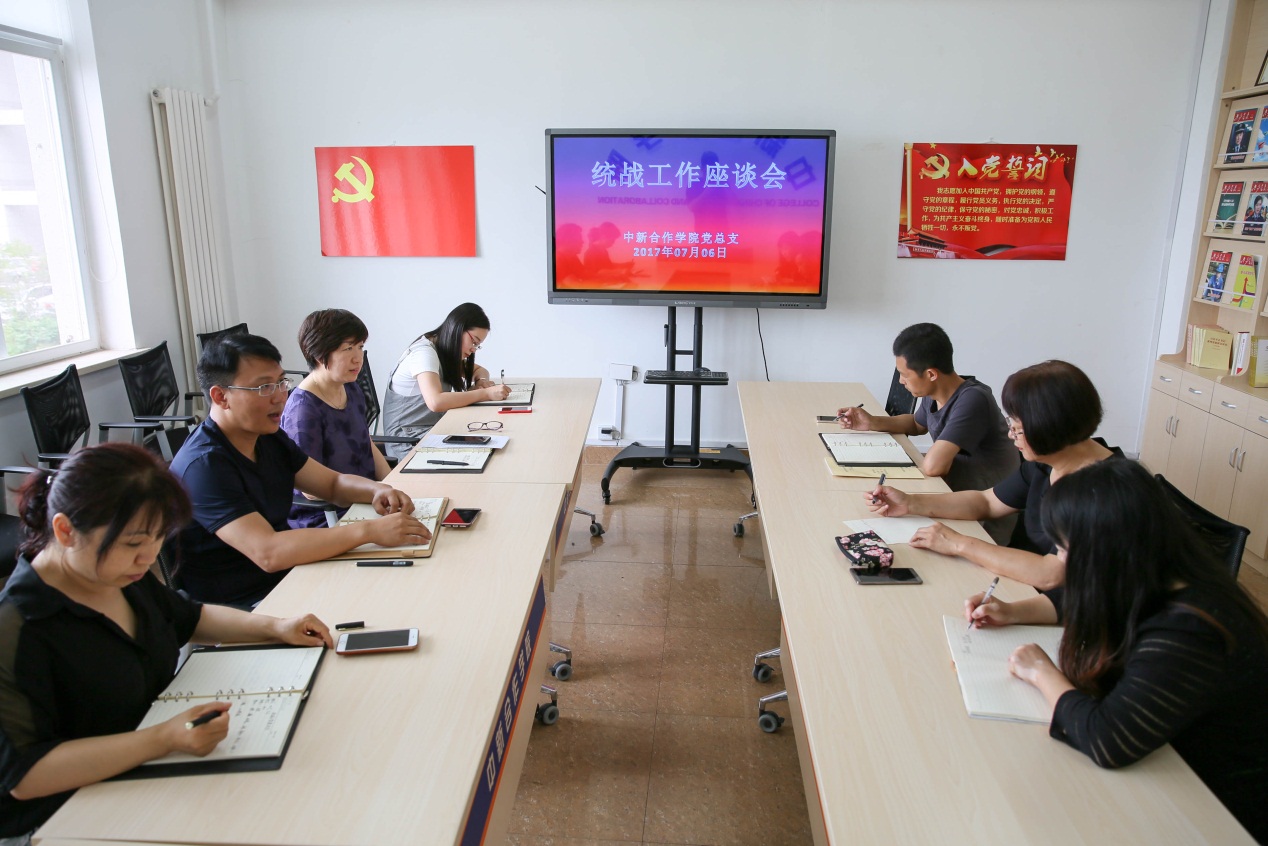 7月6日上午,91吃瓜 党总支在学院会议室召开了统战工作座谈会。学院班子成员、党支部书记与民主建国会成员郑开红、无党派人士刘东进行了座谈。
