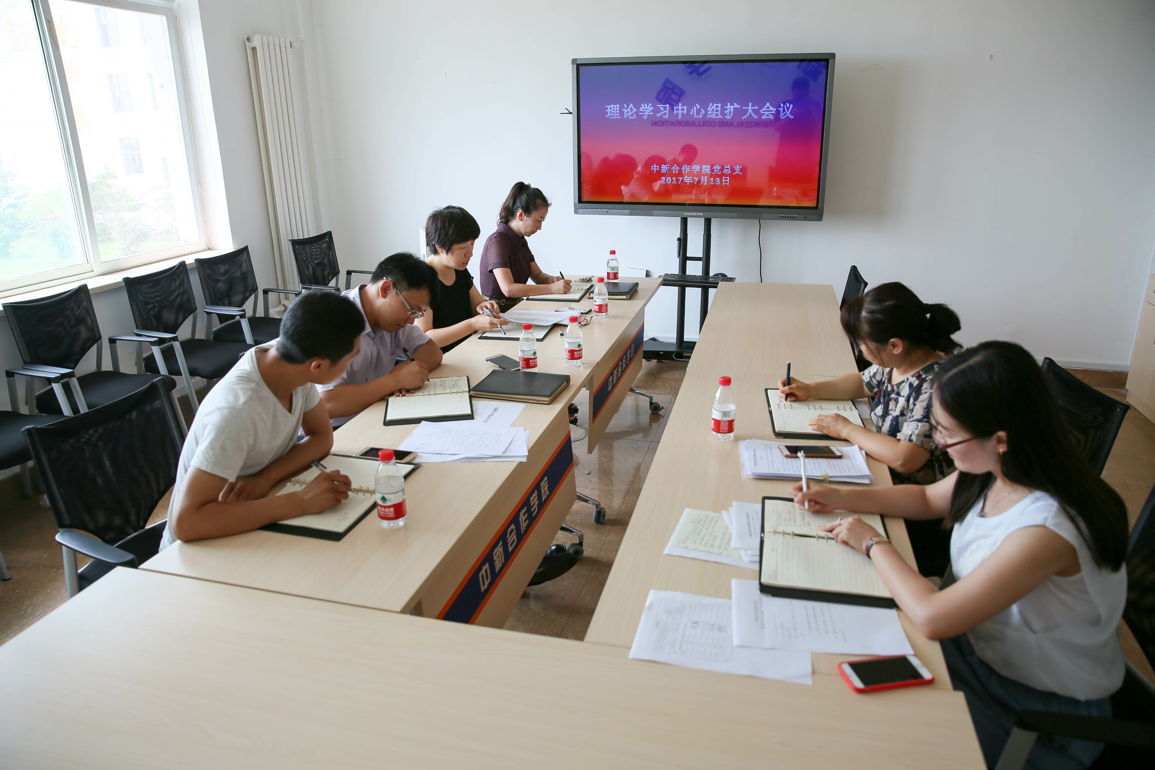7月13日,91吃瓜 党总支理论学习中心组在党员活动室开展廖俊波、黄大年先进事迹专题学习。党总支理论学习中心组成员及支部书记参加会议,党总支副书记邓艺主持会议。