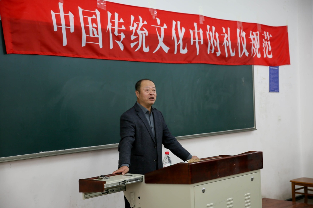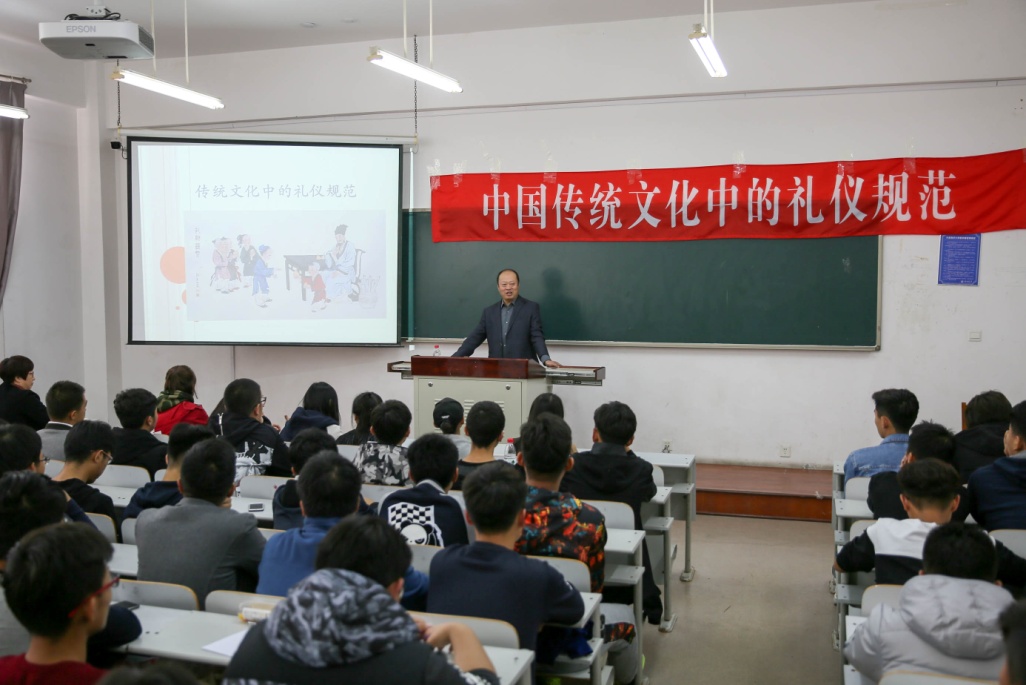 王太海教授结合古今中外的许多生动实例,从礼仪的由来、礼仪的重要性、中国传统礼仪的特点及要素等方面进行了精彩的讲解,向学生们详细阐释了弘扬传统文化中礼仪规范的目的性、学习传统礼仪应注意的问题以及学习传统礼仪应持有的态度。讲座主题鲜明、内容丰富,在场学生深深地被中国传统文化的魅力所吸引。