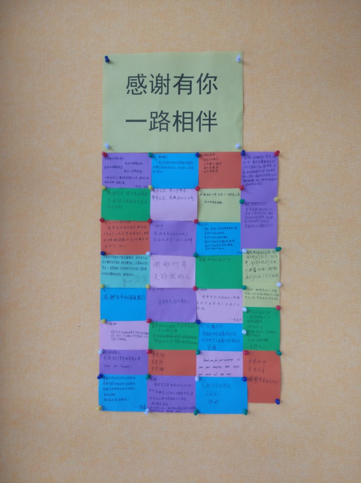 同学们亲手写出一张张小小卡片,表达了对父母、亲人、朋友说不清、道不尽的真挚的感恩、感谢、感激之情。
