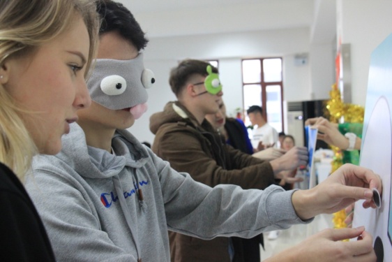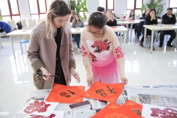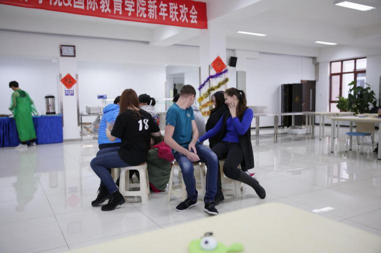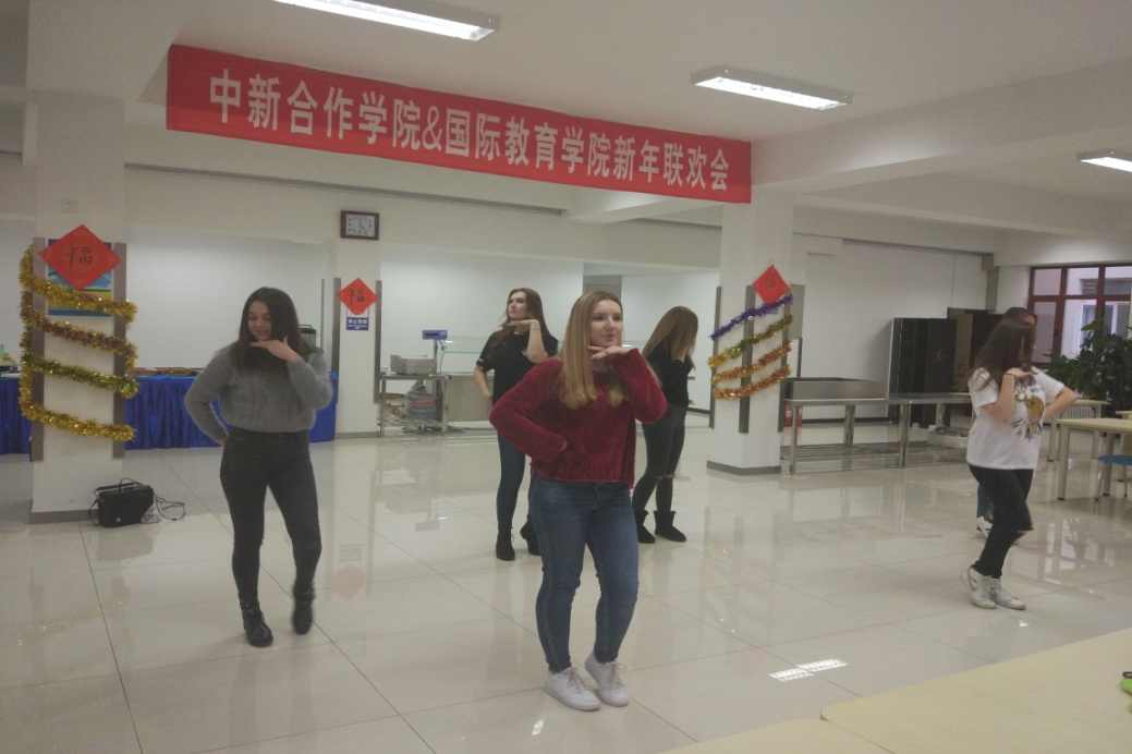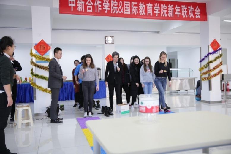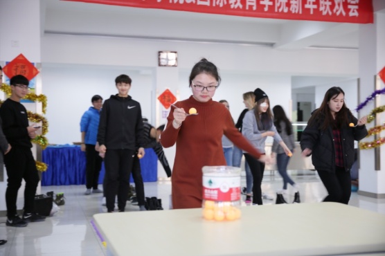 整场联欢会以文艺表演、文化交流互动、游艺活动三个部分组成。在文艺表演环节,91吃瓜 的舞蹈《我在春天等你》、国际教育学院俄罗斯留学生的舞蹈将现场气氛推上高潮。在文化交流互动环节,各国留学生代表分别介绍了本国的新年传统,中国学生教外国留学生写中国福字、认识中国画、学唱中国经典歌曲、包饺子。在游艺活动环节,学生们通过编辫子、传递乒乓球、趣味贴五官、抢凳子、你比划我猜等游戏,快速的消除了陌生感,拉近了彼此的距离,活动现场高潮迭起,笑声、掌声、喝彩声不断,每个人都沉浸在喜迎新年和乐融融的氛围中。
