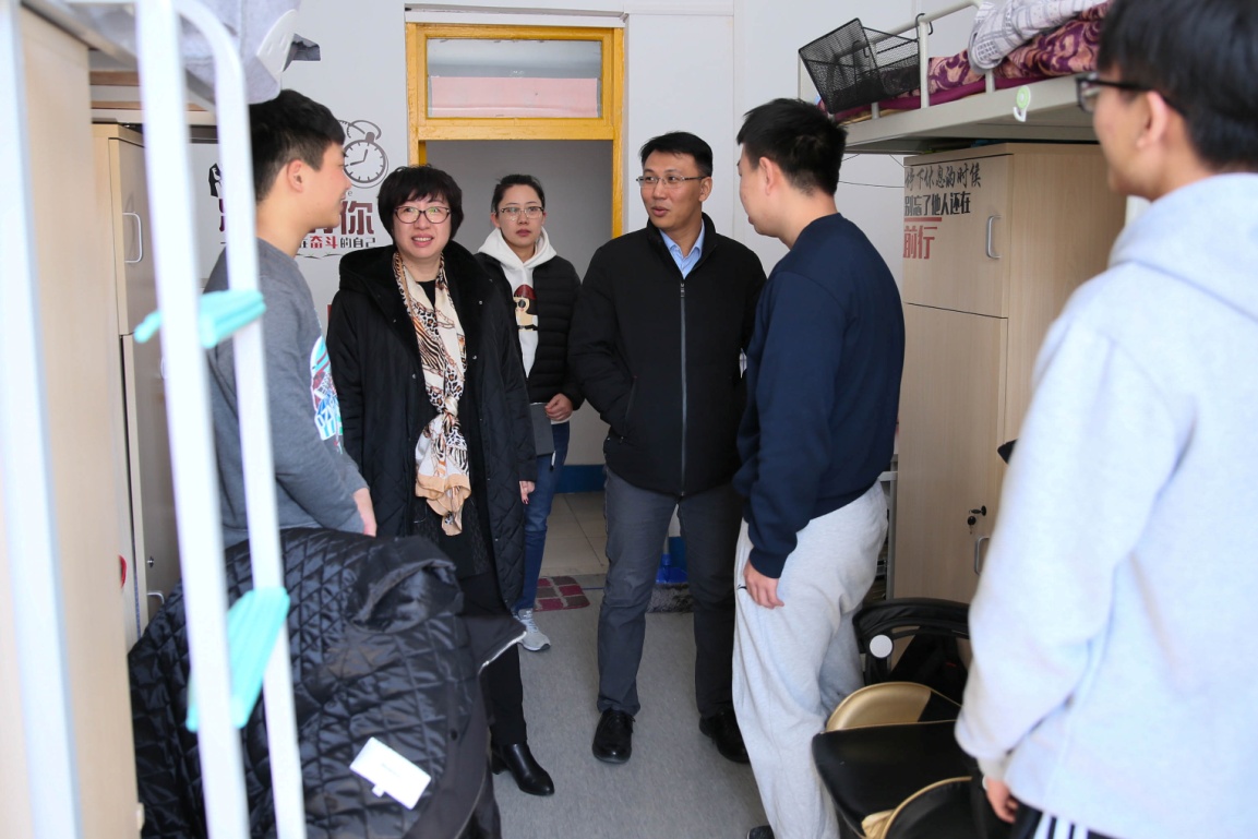 在学生宿舍,学院院长高巍、党总支副书记邓艺亲切地询问了同学们寒假的学习、生活情况,鼓励学生结合个人实际情况做出学期计划和个人长远发展规划,以饱满的热情投入到新学期的学习和生活之中。