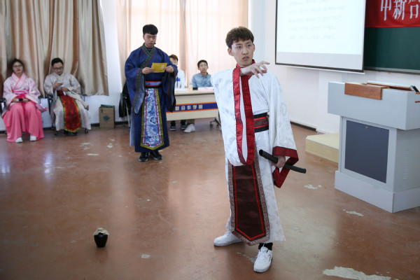 比赛的最后进行了汉服表演。同学们向大家展示了汉服的庄重、优雅之美,阐释了汉服所包含的丰富深刻的精神文化内涵。