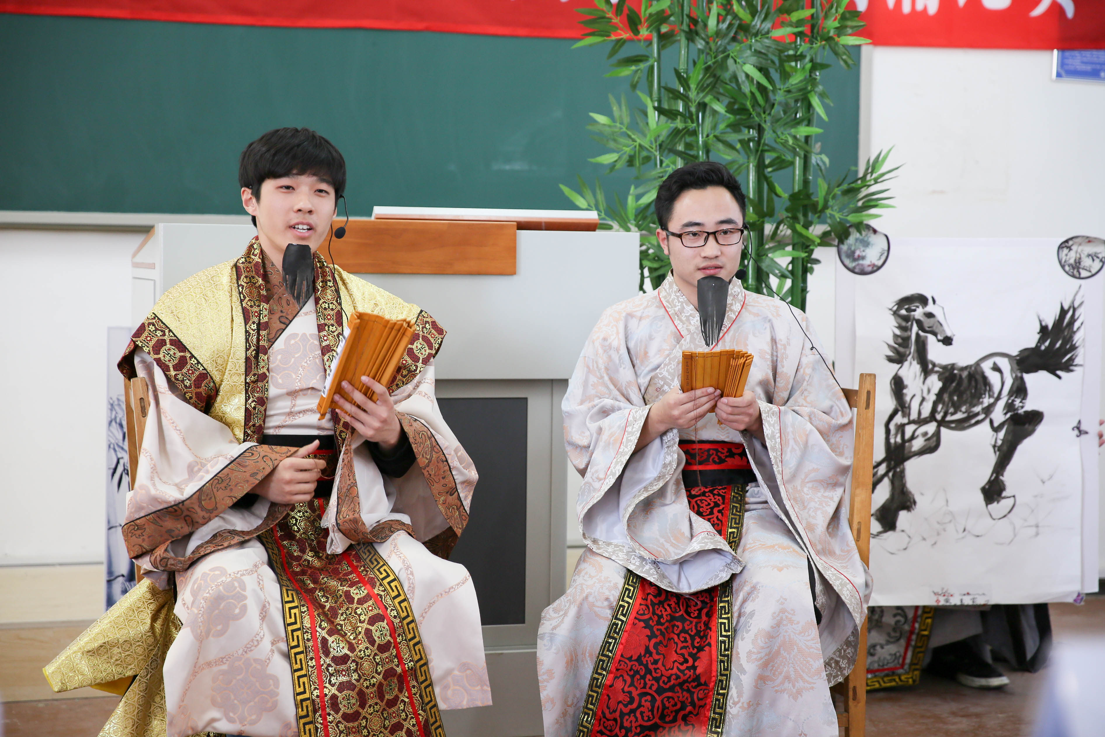 比赛以《诗经》诵读为主要内容,参赛学生以双人组合的形式对传统作品做出创新性的编排和诠释。比赛过程中,同学们精神饱满,诵读流畅,表演精彩纷呈,各具特色,他们或慷慨激昂、或温柔婉约、或平淡超然,为传统文学作品注入了新的活力。经过激烈的角逐,陈嘉森、谭昕同学表演的《国风·卫风·氓》,以其极强的表现力和感染力斩获一等奖。