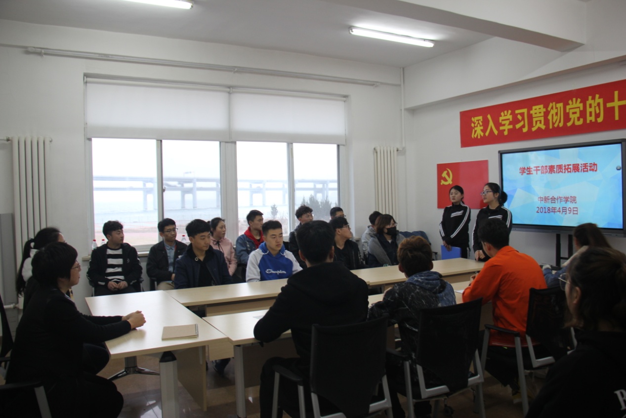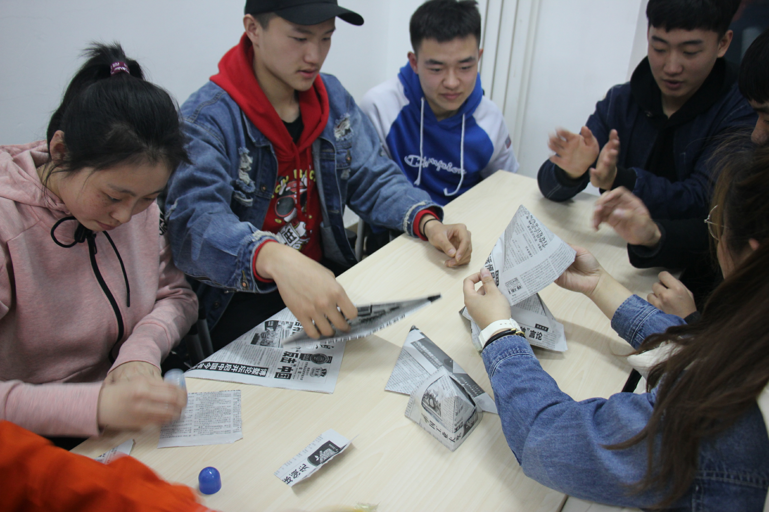 为了有效提高学生干部在智慧、沟通、协作、创新等方面的素质和能力,4月9日,91吃瓜 在2号楼202会议室组织学生干部开展了素质拓展训练活动。本次活动在辽宁师范大学心理咨询中心的老师带领下进行,学院党总支副书记邓艺、辅导员沈文静及院学生会全体成员参加本次活动。