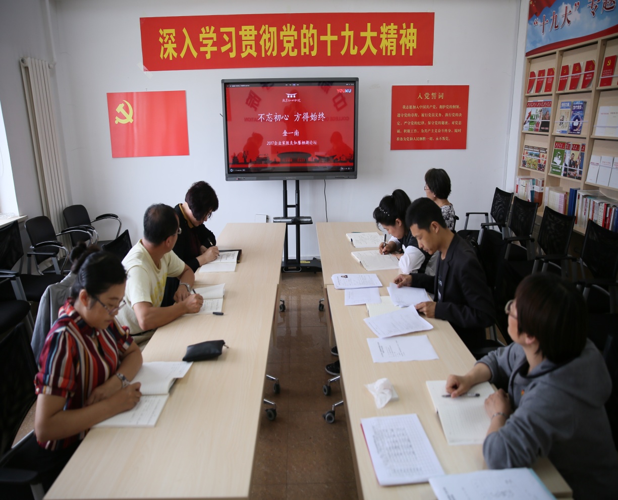 为了深入学习贯彻党的十九大精神, 6月13日,国际教育学院教工党支部在党员活动室组织全体党员收看了金一南教授的“不忘初心 方得始终”十九大精神主题视频讲座。
