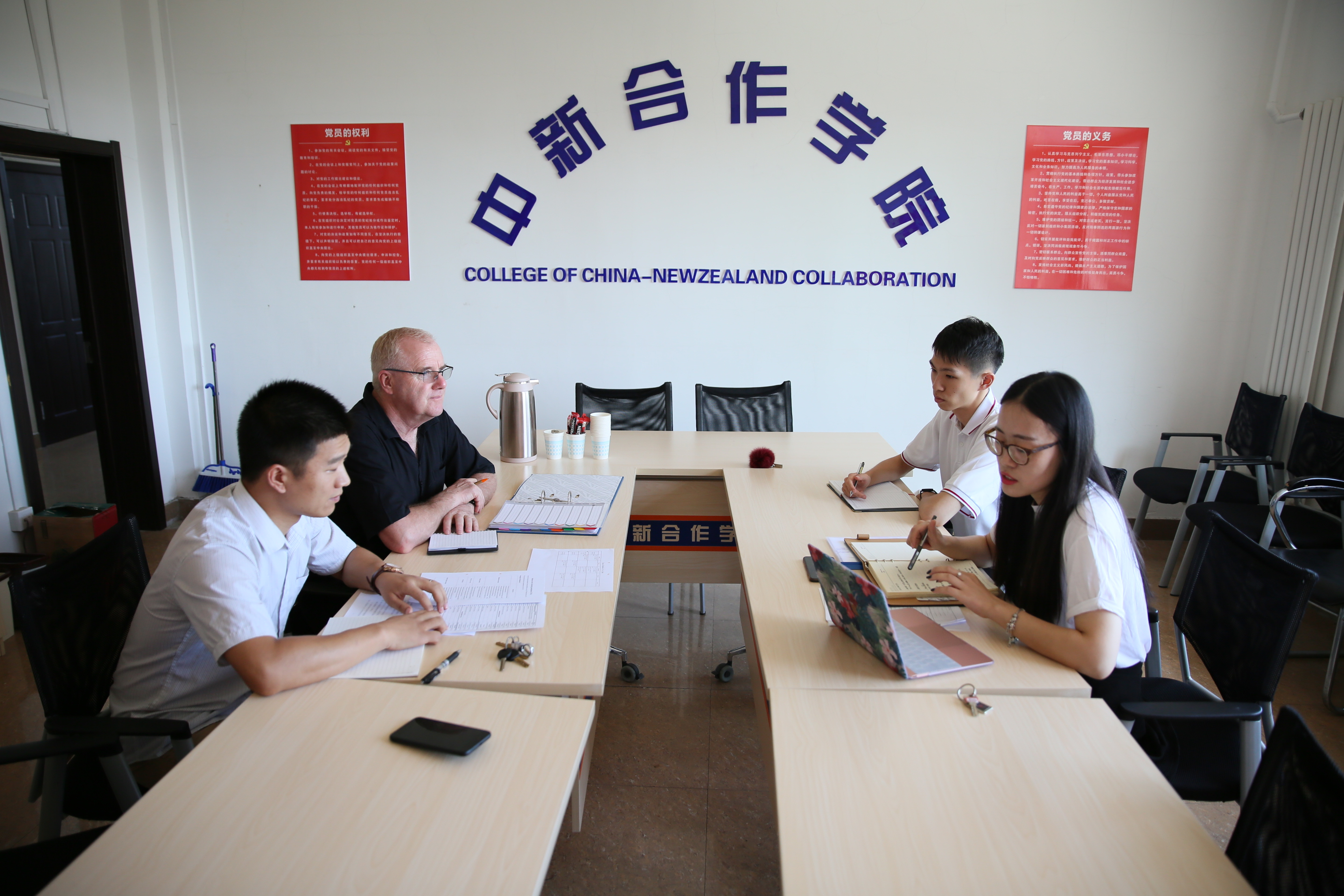 为进一步完善教学质量监控与保障机制,确保本学期教学工作的顺利开展,学院在学期初分别召开各门外方引进课程的外籍教师与助课教师沟通碰头会,确保教学准备工作的顺利实施。碰头会均由学院教学办公室牵头,奥塔哥理工学院北方项目办公室配合召开。会议相应课程主讲教师、助课教师、教学秘书李博雅、北方项目办公室项目经理金德钰等共同参加,以确保学院的沟通机制顺利实行和新学期教学顺利开展。