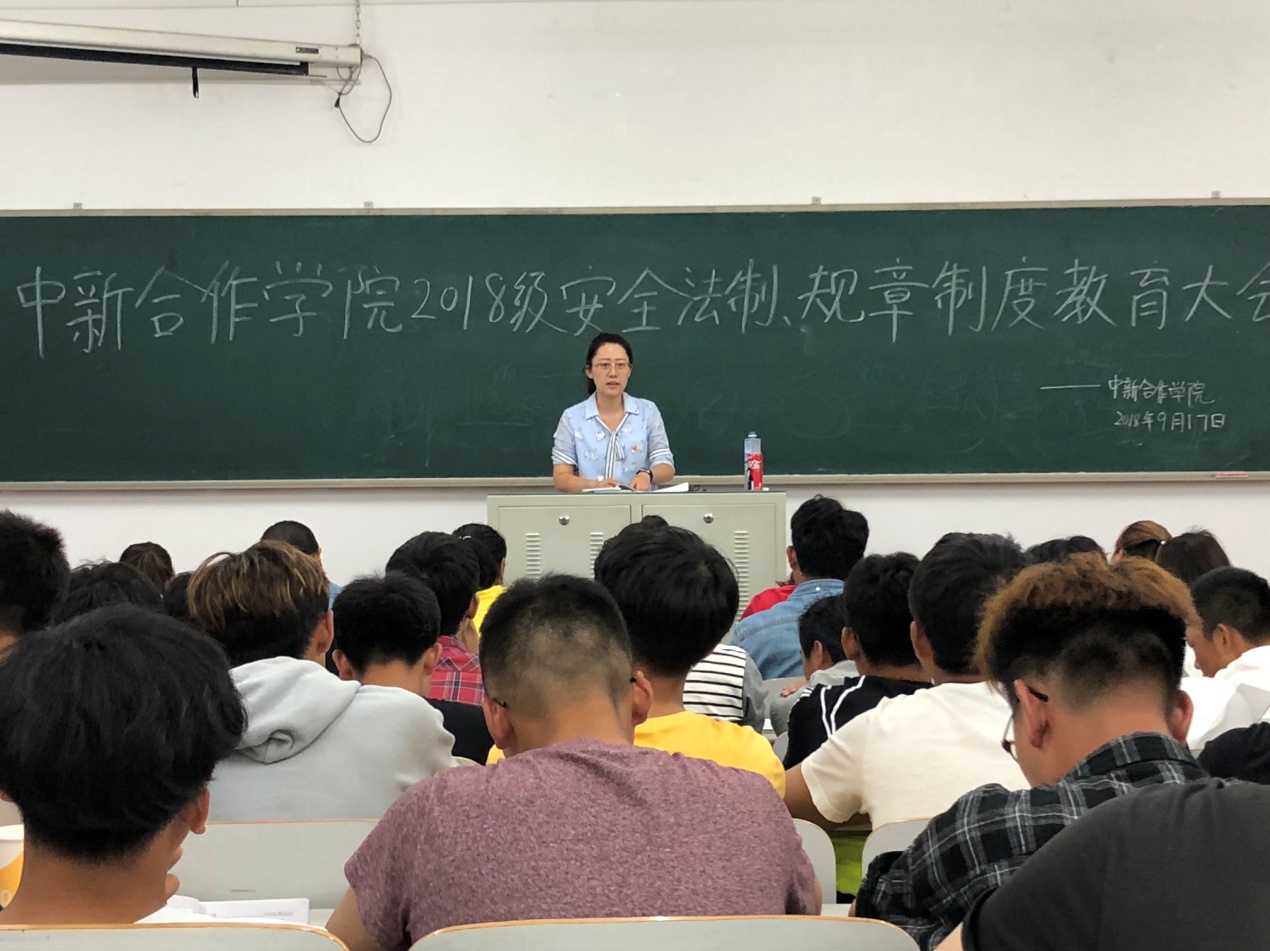 9月17日,91吃瓜 在黄海校区獐子岛教学楼104教室召开了“2018级安全法制、规章制度教育”大会。学院2018级全体新生参加会议,会议由辅导员沈文静主持。