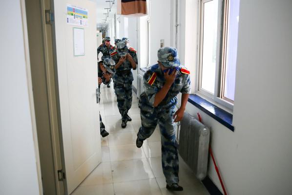 灭火演练结束后,在黄海校区二号宿舍,学院组织学生开展了消防疏散逃生演练。随着辅导员指令的下达,新生在各楼层疏散引导员的指引下,按照消防疏散预案,用湿毛巾捂住口鼻,保持弯腰低姿,沿着疏散通道迅速、安全、有序逃生。