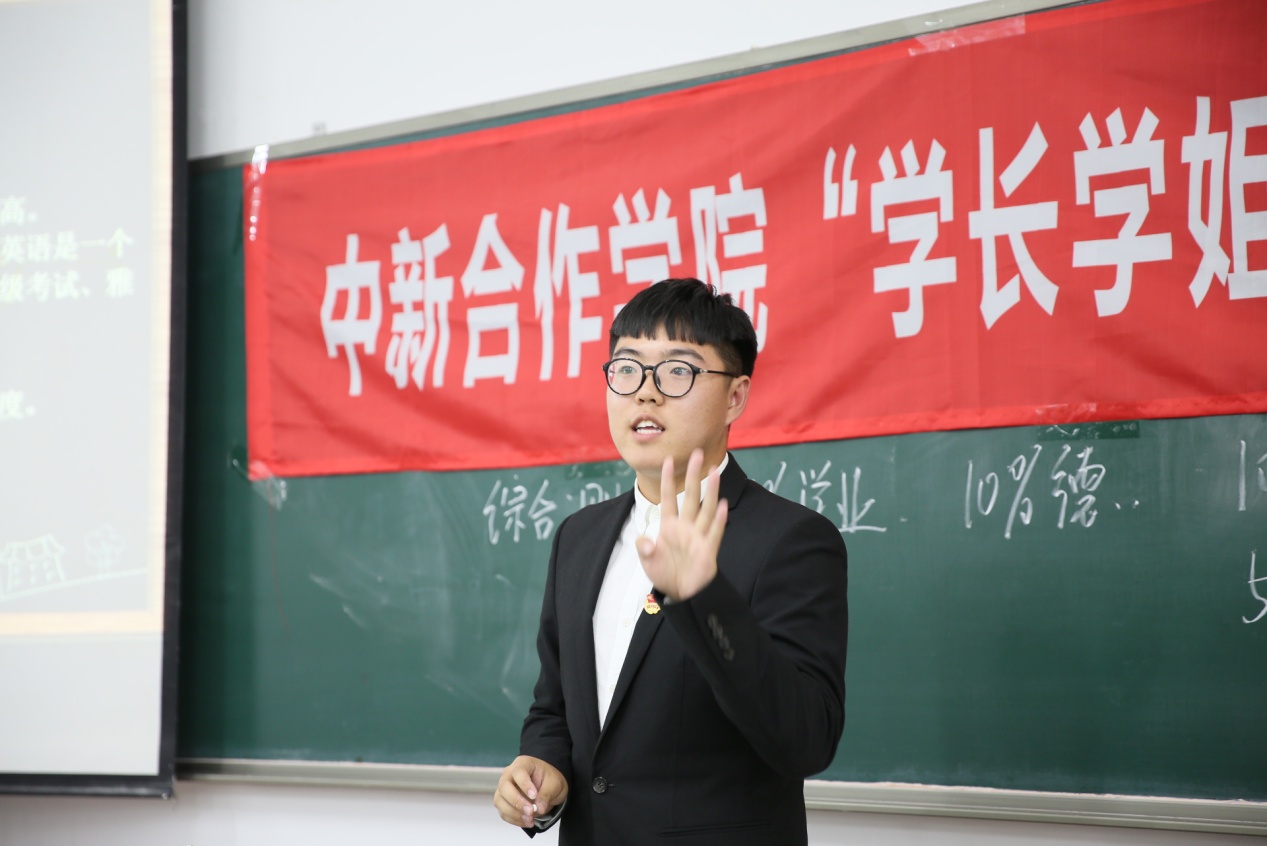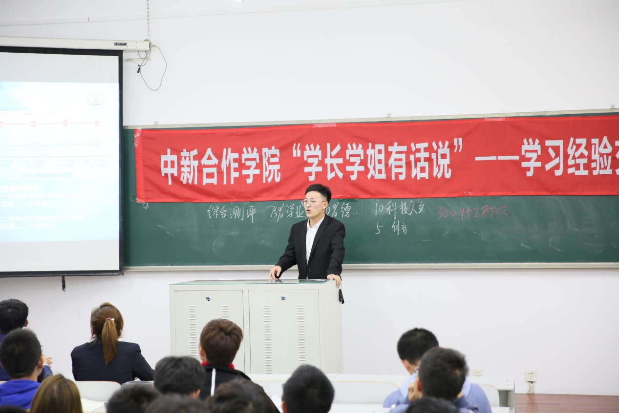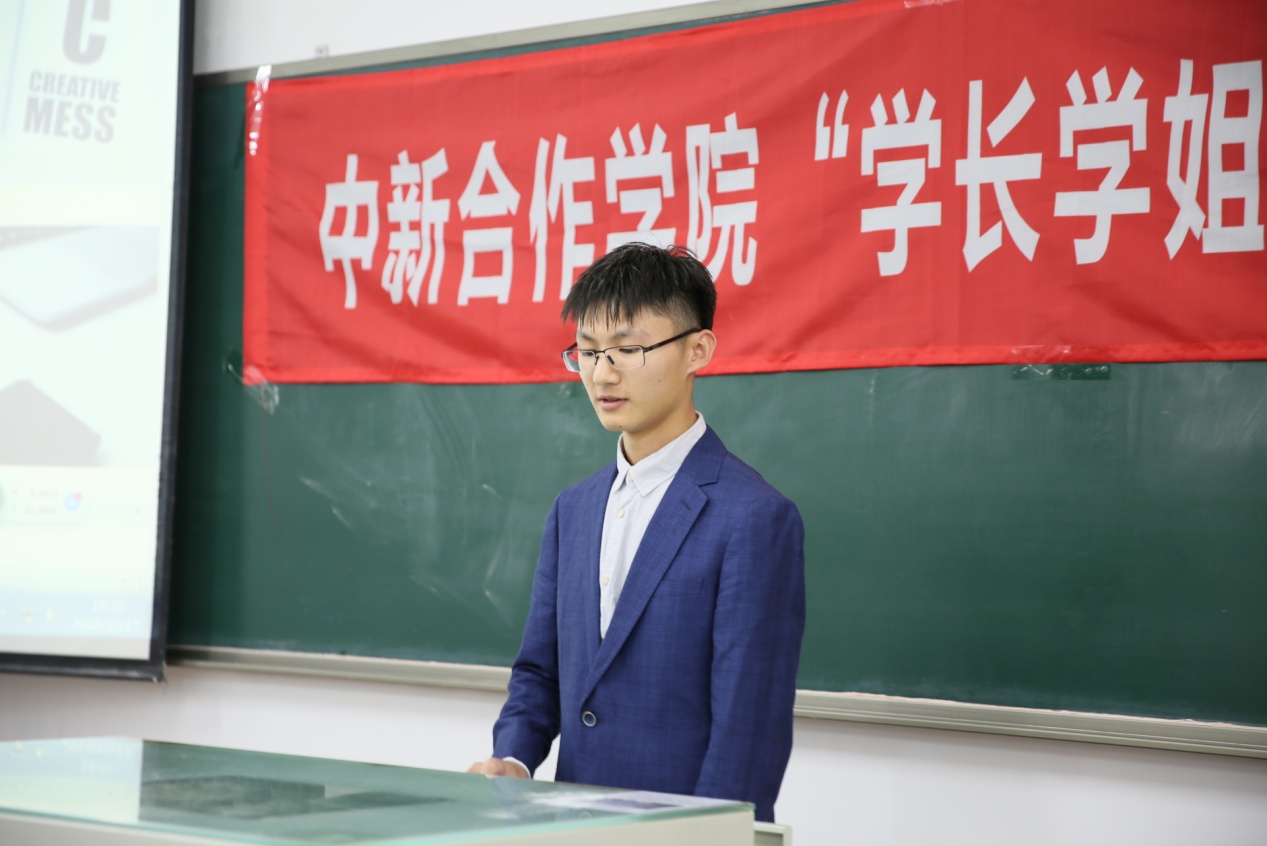 (图为《画法几何与机械制图》单科成绩状元常轶智发言)