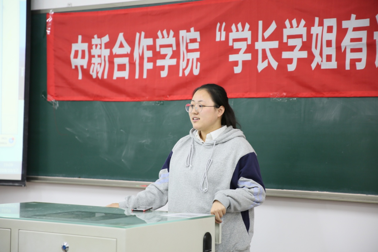 (图为《高等数学》和《大学英语》单科成绩状元史立妍发言)