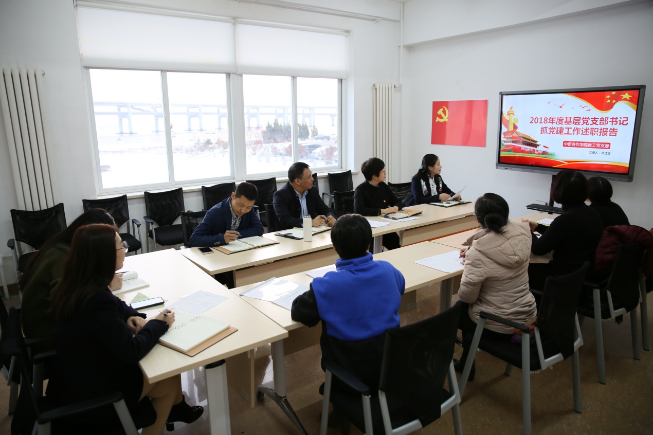 2018年12月11日下午,中新合作学院党总支于学院党员活动室召开2018年度基层党支部书记抓党建工作述职评议会。学院党总支委员会委员、支部委员、组织员、教师代表参加会议,会议由党总支副书记邓艺主持。