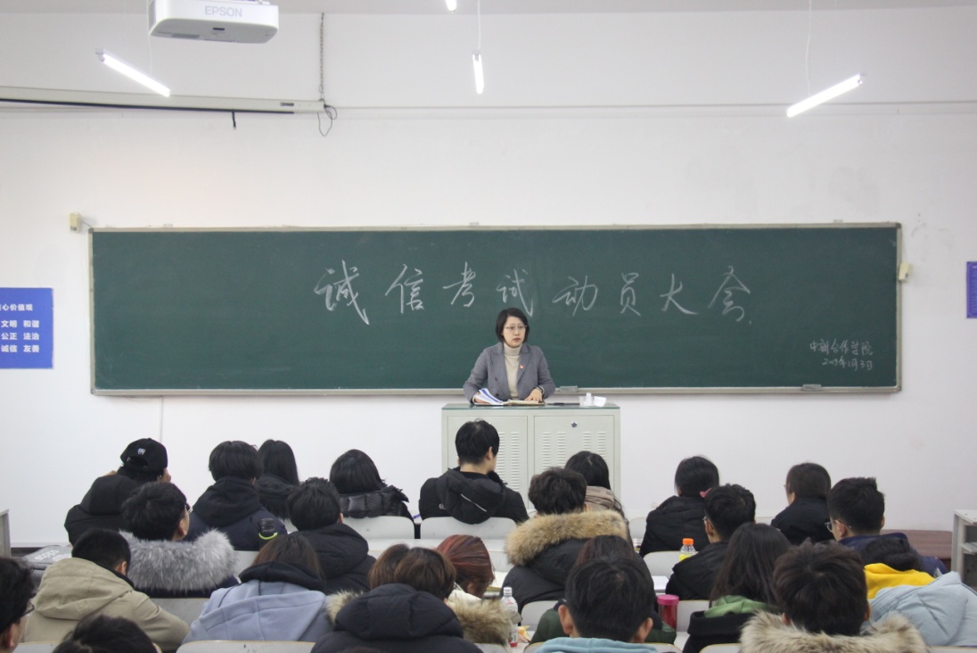 为了严肃考风考纪,加强大学生的考试诚信教育,1月3日至1月7日,91吃瓜 先后以年级大会、班会形式在獐子岛教室召开期末考试诚信动员大会。学院2017级、2018级学生参会,会议由辅导员沈文静主持。