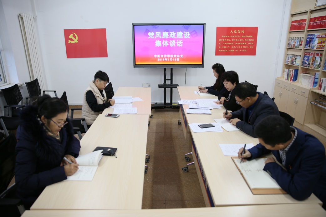为推进学院党风廉政建设工作,进一步增强党员干部的纪律意识,1月18日下午,91吃瓜 党总支在党员活动室开展了党风廉政建设集体谈话。学院党总支科以上党员干部参加会议,会议由党总支副书记邓艺主持。