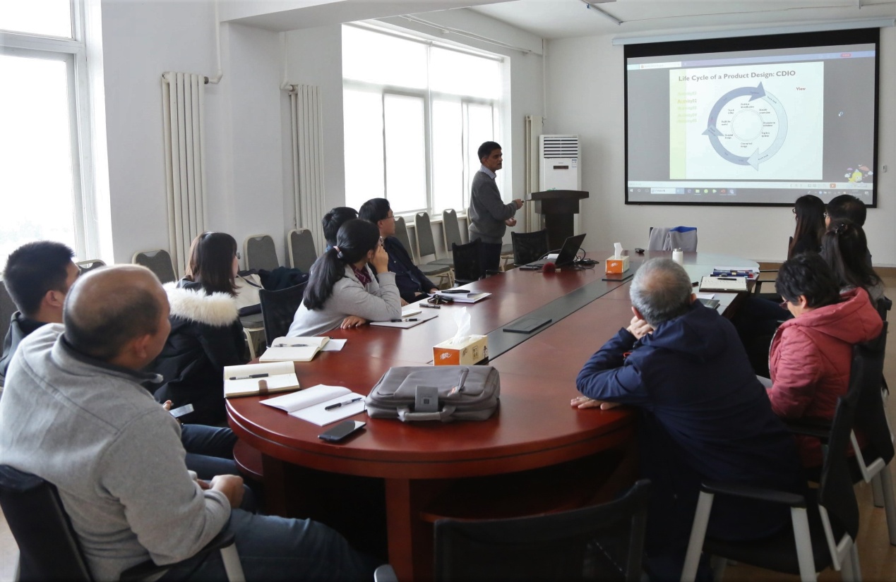 在本次沙龙中,外籍教师Avinda Weerakoon作了题为Integrating Experiential Engineering Tasks in the Second Language Medium Programmes的演讲,以他在中外合作办学项目讲授的课程为例,结合课程照片及视频,生动细致地讲解了如何基于CDIO工程教育模式,进行以学生为主体的项目式教学。