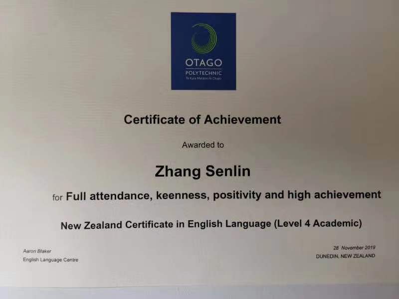 11月28日,在新西兰奥塔哥理工学院Level4语言课程结业典礼上,2016级陈嘉森,张森林两名同学被奥塔哥理工学院语言中心评为优秀毕业生,并颁发证书以资鼓励,此次仅两位中国学生获此殊荣。