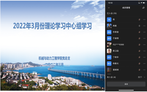 2022年3月28日,机械与动力工程学院党总支在学院在钉钉线上平台召开2022年3月份理论学习中心组学习会议。学院党总支理论学习中心组成员、各党支部书记参加会议,本次学习由党总支书记高巍同志领学。