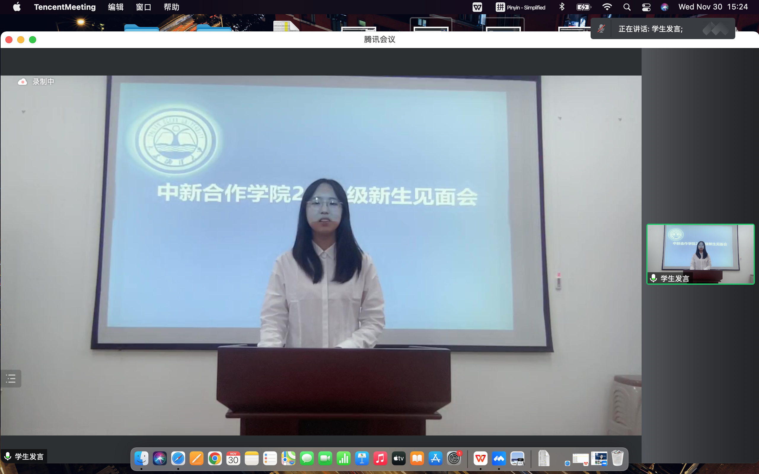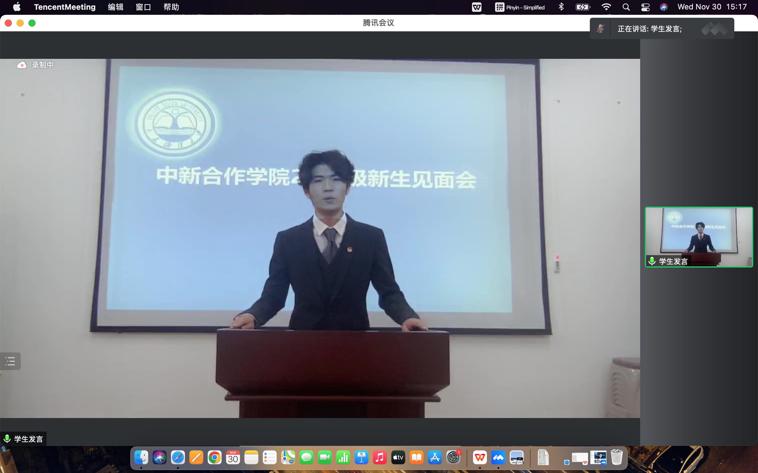 我院在校生代表机械设计制造及其自动化(中新合作)专业2021级曹世豪、机械设计制造及其自动化(中新合作)专业2021级刘智宇,新生代表机械设计制造及其自动化(中新合作)专业2022级宋欣然先后发言。