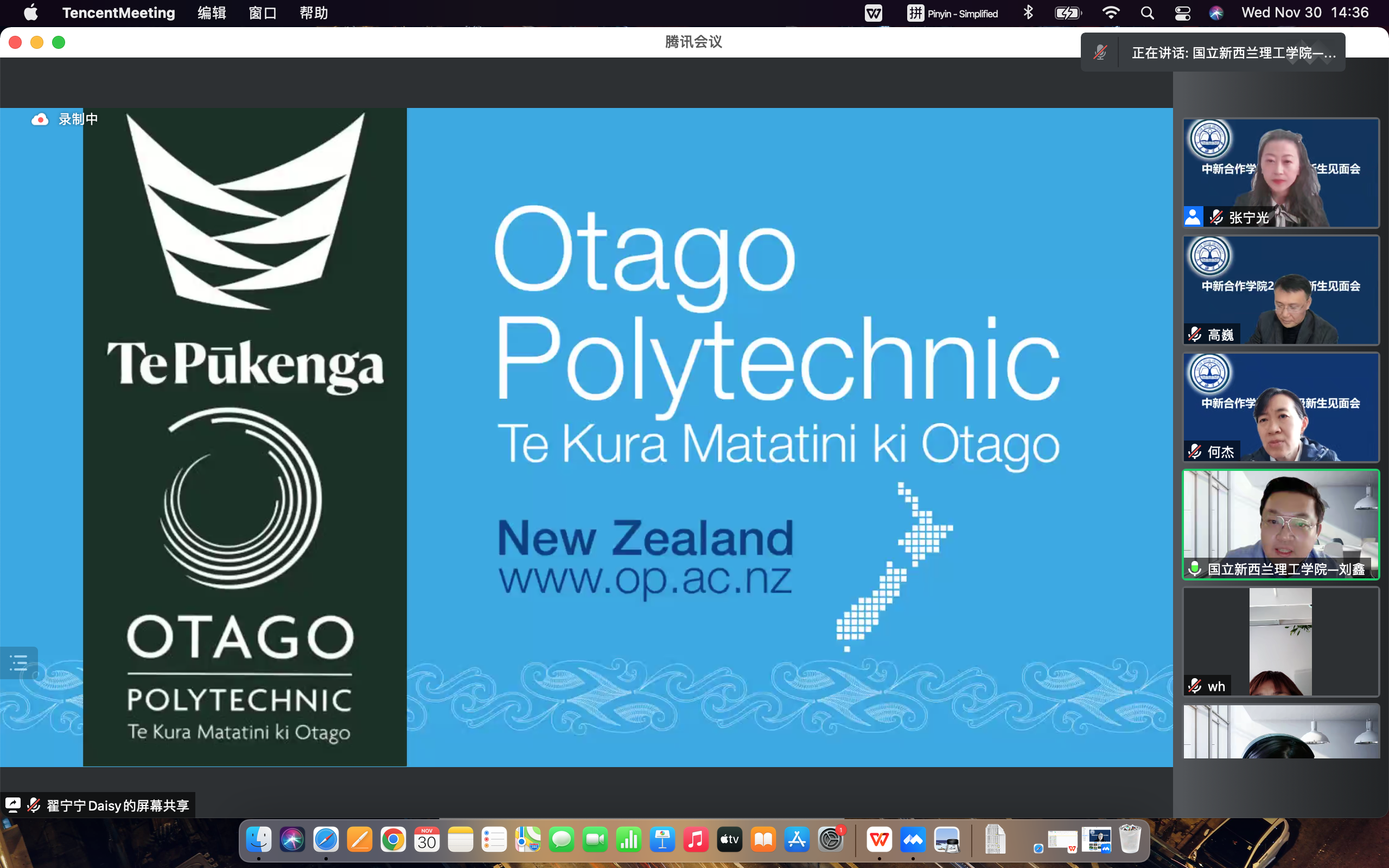 随后,刘鑫播放了新西兰国立理工学院奥塔哥理工学院分校院长Megan Gibbions教授、机械学院Mark Cartwhite院长及课程教师John Findlay的欢迎视频,以出国学生留学视频为引言,介绍了新西兰概况、新西兰国立理工学院奥塔哥理工学院分校办学情况、出国录取标准及未来发展情况。
