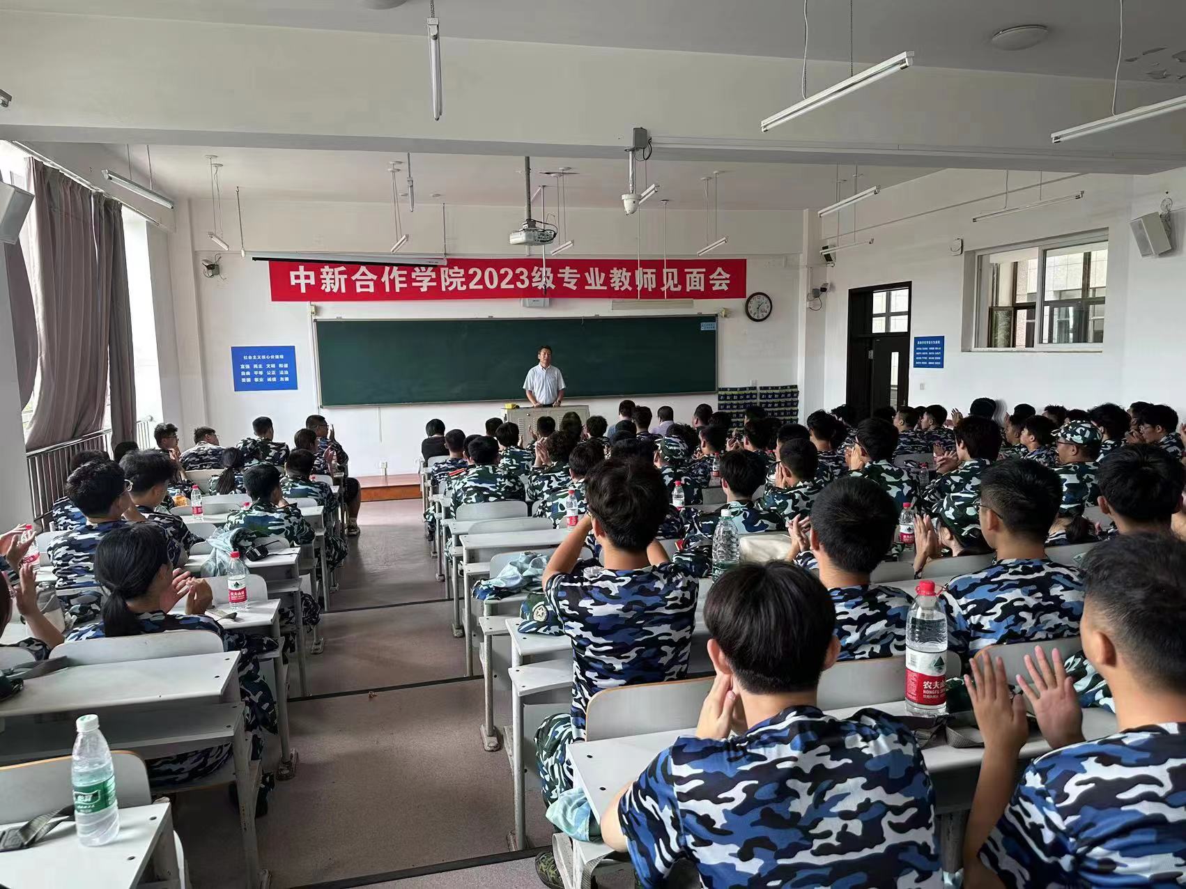 副院长母刚、党总支副书记沙雷,2023级全体新生参加会议。会议由母刚主持。