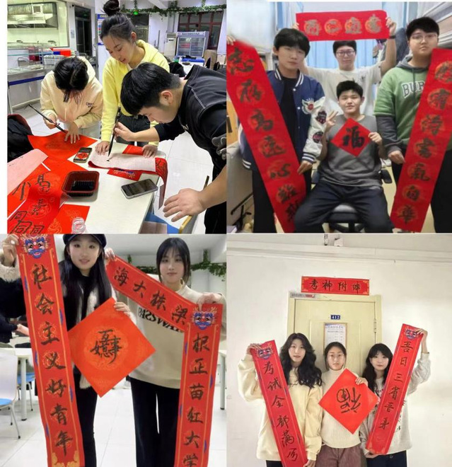 同学们在欢快的氛围中开心包饺子,在挥毫泼墨中各展才华。通过活动的开展,增进了团队协作的默契,增强了学生干部的团队凝聚力。同时,以包饺子和写春联的形式表达了对新年的祝福和美好的期许,加深学生对优秀传统文化的理解,为迎接新年营造浓厚的文化氛围。