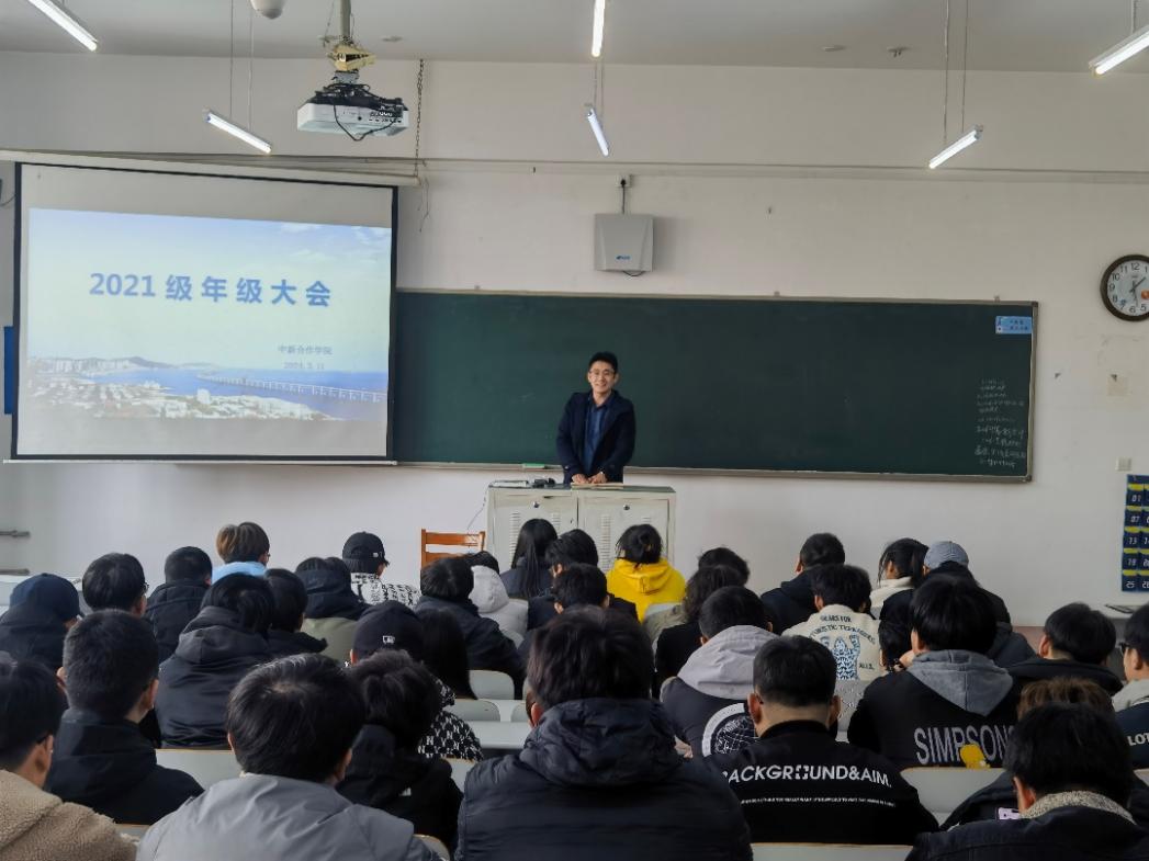 近期,91吃瓜 在獐子岛教学楼206教室,召开2021级学生年级大会,本次会议由学院辅导员刘伟健主持,2021级全体学生参加。