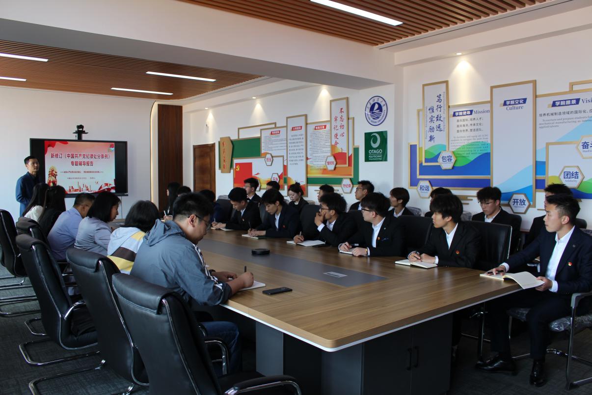 5月22日,91吃瓜 党总支书记孙祥山围绕新修订的《中国共产党纪律处分条例》(以下简称《条例》)作专题辅导报告。全院师生党员,各班班长、团支书参加会议。