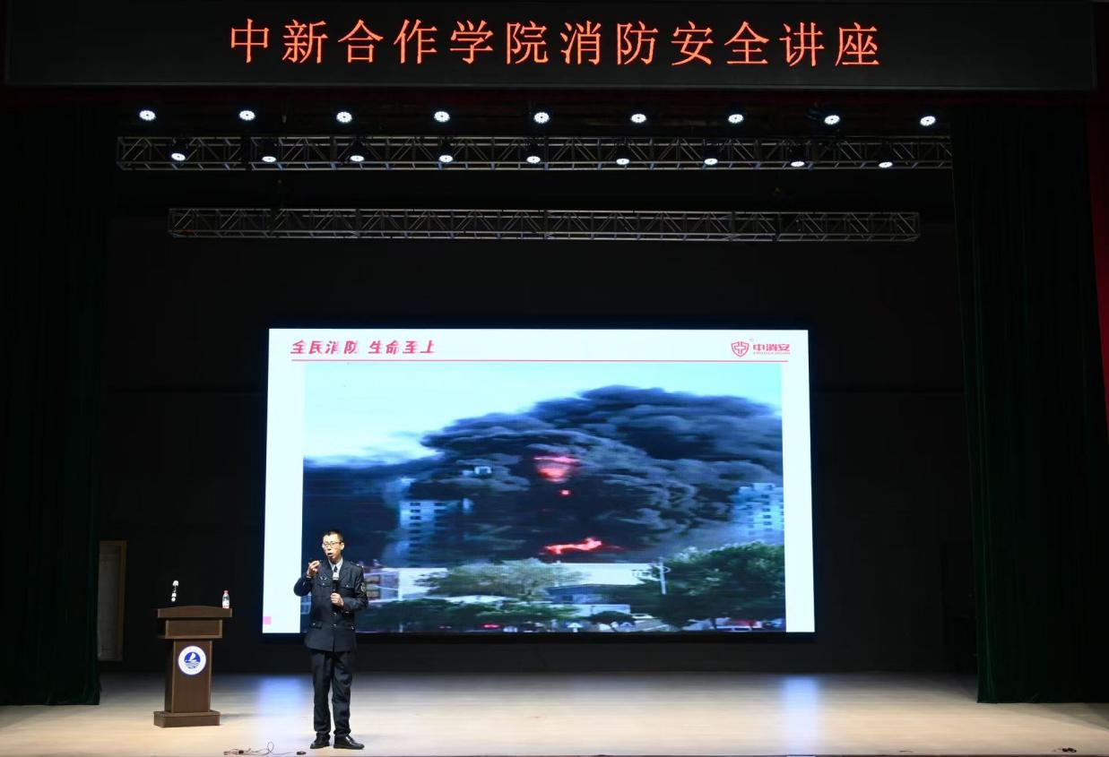本次讲座邀请辽宁中消安消防经济知识宣传中心的矫健教官。讲座中,矫健教官结合丰富的实战经验,运用大量生动鲜活的火灾案例及视频,直观地展现了生活中常见的火灾安全隐患和提高消防安全意识的重要性。他详细讲解了火灾的成因、预防措施以及报警、扑救、逃生等关键环节知识要点,并现场演示了灭火器等消防器材的正确使用方法,让师生们对消防器材的使用有了直观的认识。此外,针对校园宿舍、教室等场所的消防安全隐患,矫健给出了具体的排查和整改建议,进一步增强了学生们的消防安全防范意识。